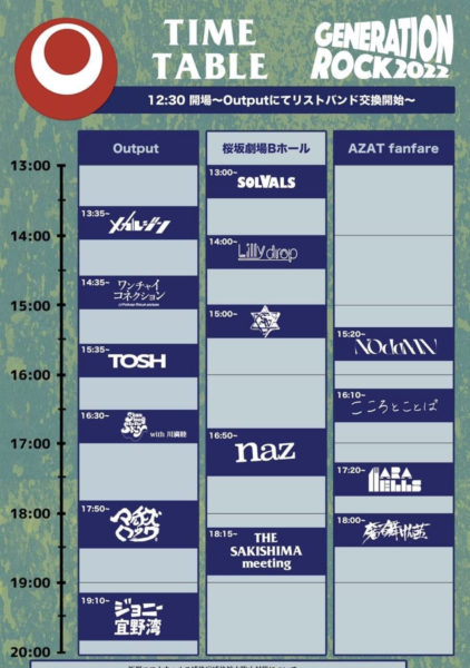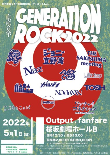 2022年5月1日 GENERATION ROCK ー県産音楽ー 2022 タイムテーブルも決定!